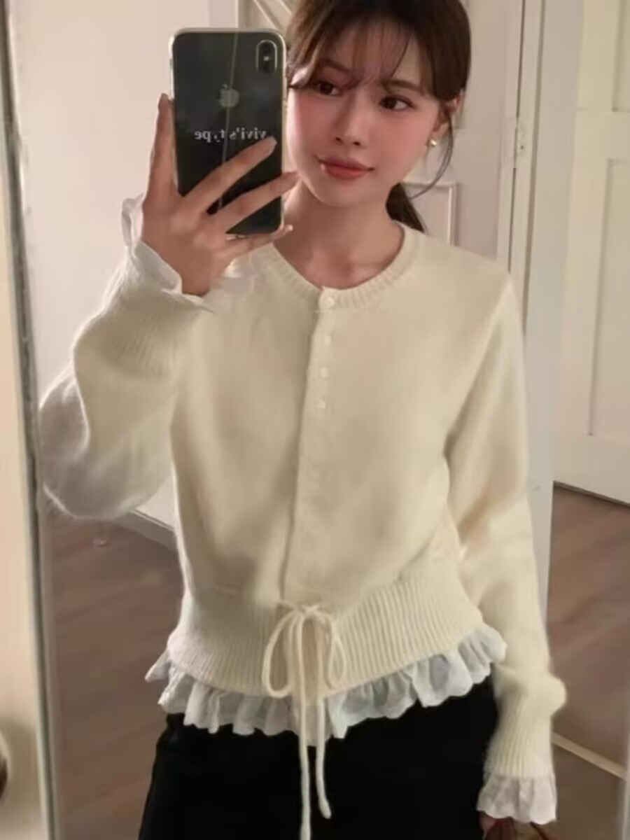 着痩せ おしゃれ ラウンドネック ニット 優しい 可愛い トップス ブラウス
