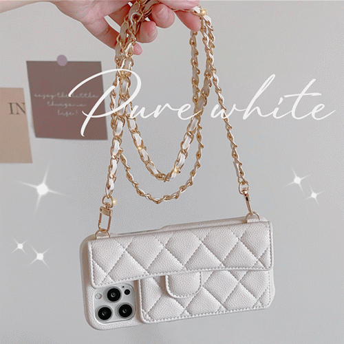 立体感のあるキルティングレザーが、スマホを上品でエレガントな印象にします。